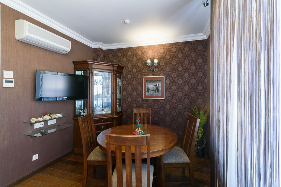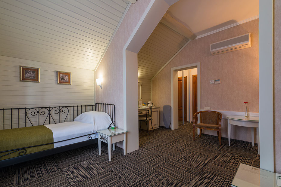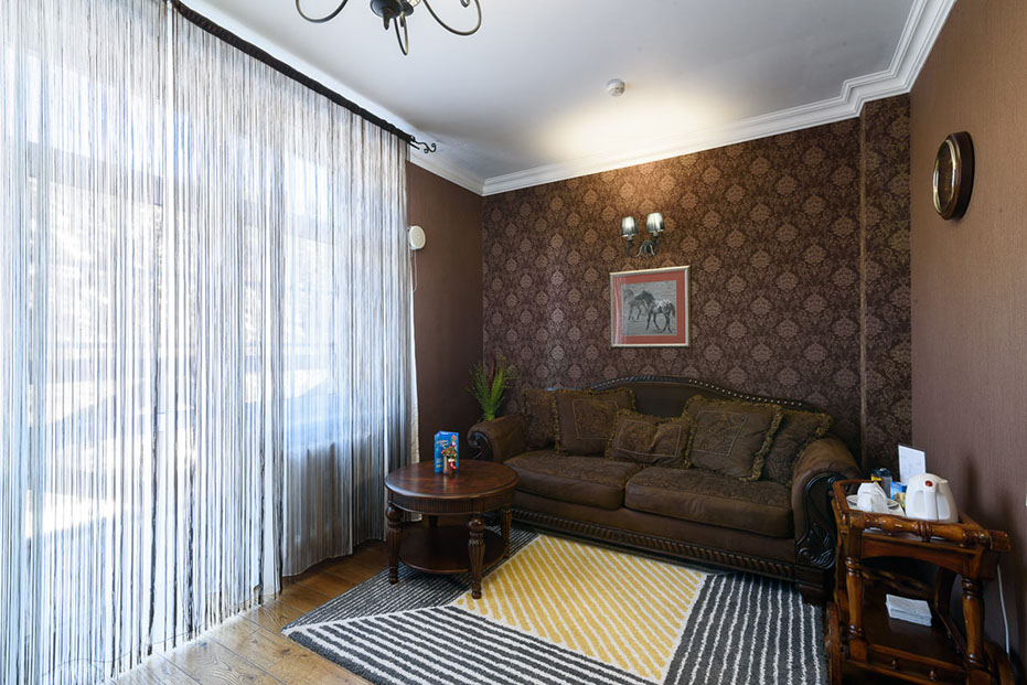 В номере: кровать (180*195), кондиционер, ЖК TV, фен, телефон, сейф индивидуальный, холодильник, гладильный центр, диваны