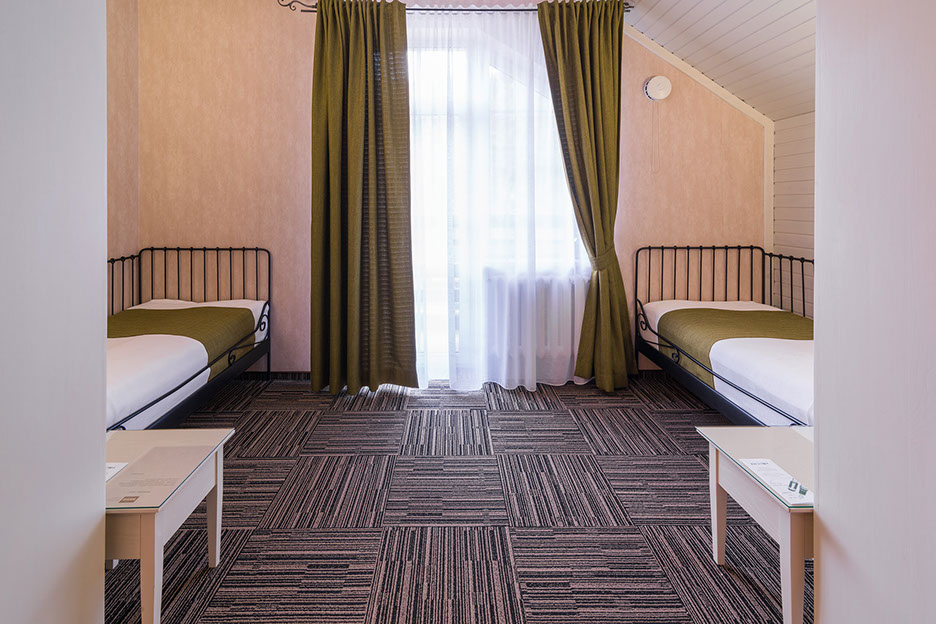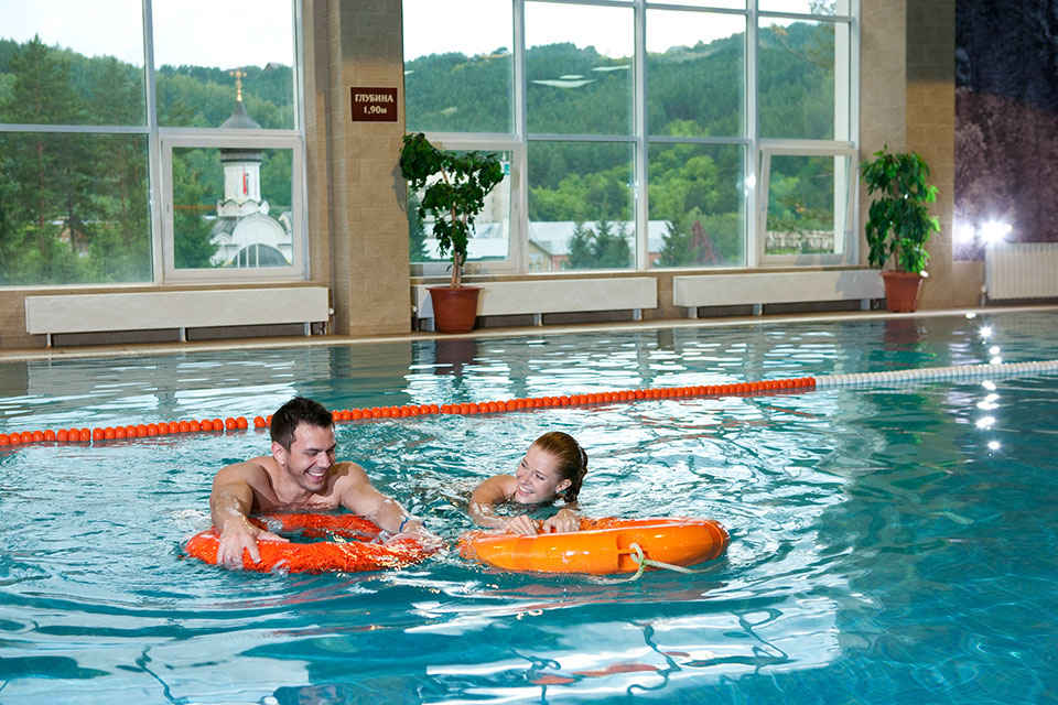 Горнолыжный склон, ледовый каток, лыжероллерная трасса, бассейн, боулинг, бильярд, спортивная и детские площадки и многое другое, в отеле — ресторан, сауна и пункт проката