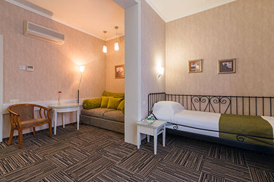 Горнолыжный склон, ледовый каток, лыжероллерная трасса, бассейн, боулинг, спортивная и детские площадки и многое другое, в отеле — ресторан, бильярд, сауна и пункт проката