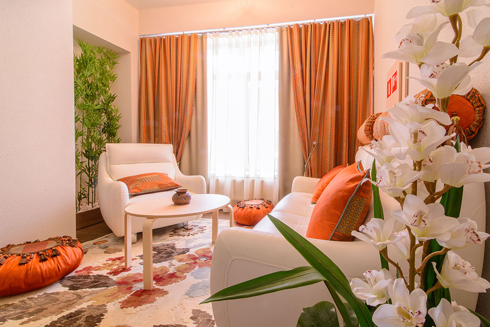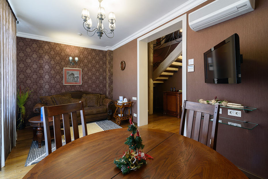 В номере: кровать (180*195), кондиционер, ЖК TV, фен, телефон, сейф индивидуальный, холодильник, гладильный центр, диваны